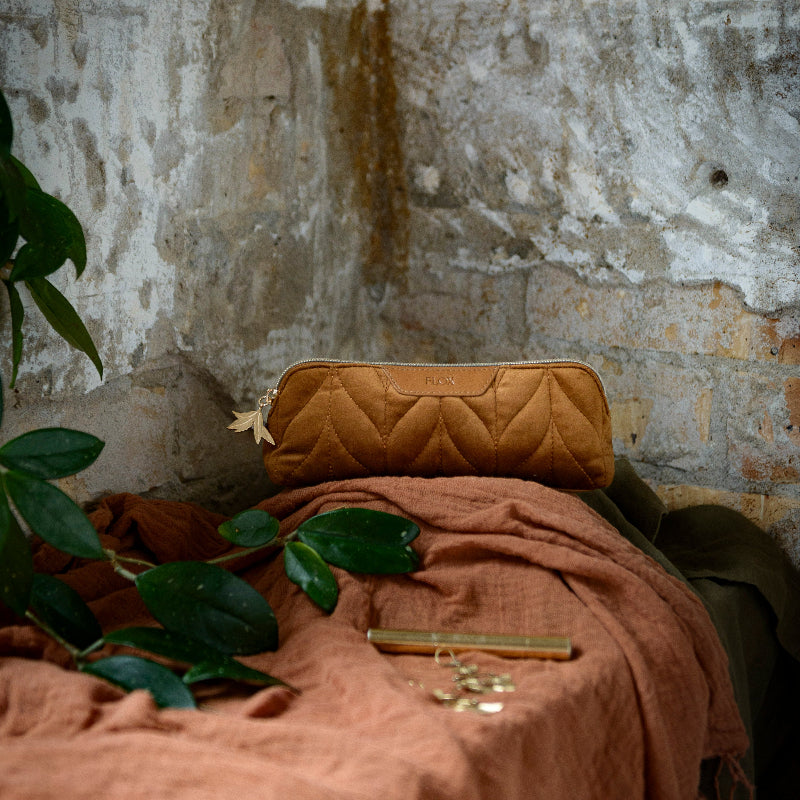 This stunning velvet cosmetic pouch by FLOX is perfect for light travellers.