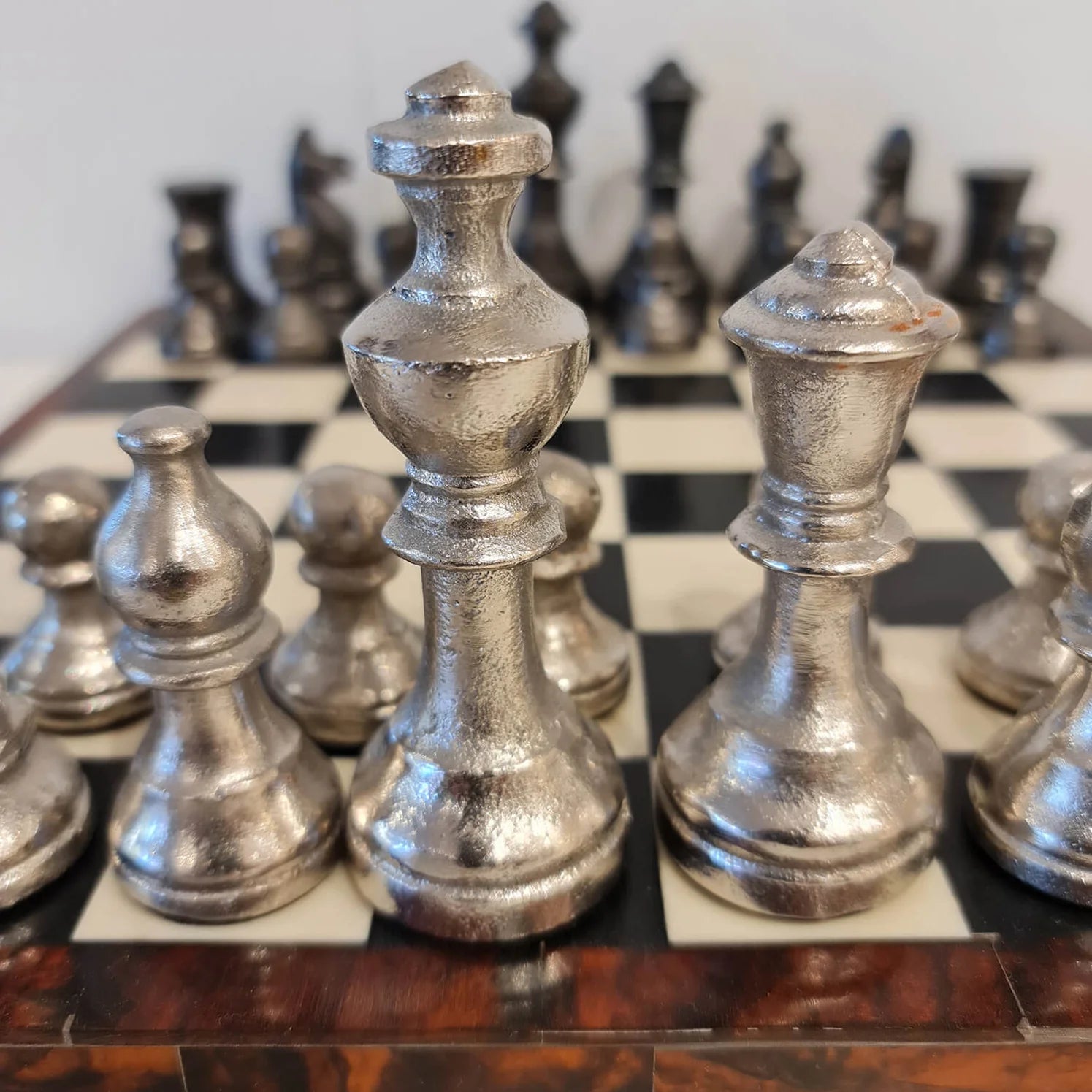 This chess set is a wonderful statement piece, made with wood, resin and aluminium.