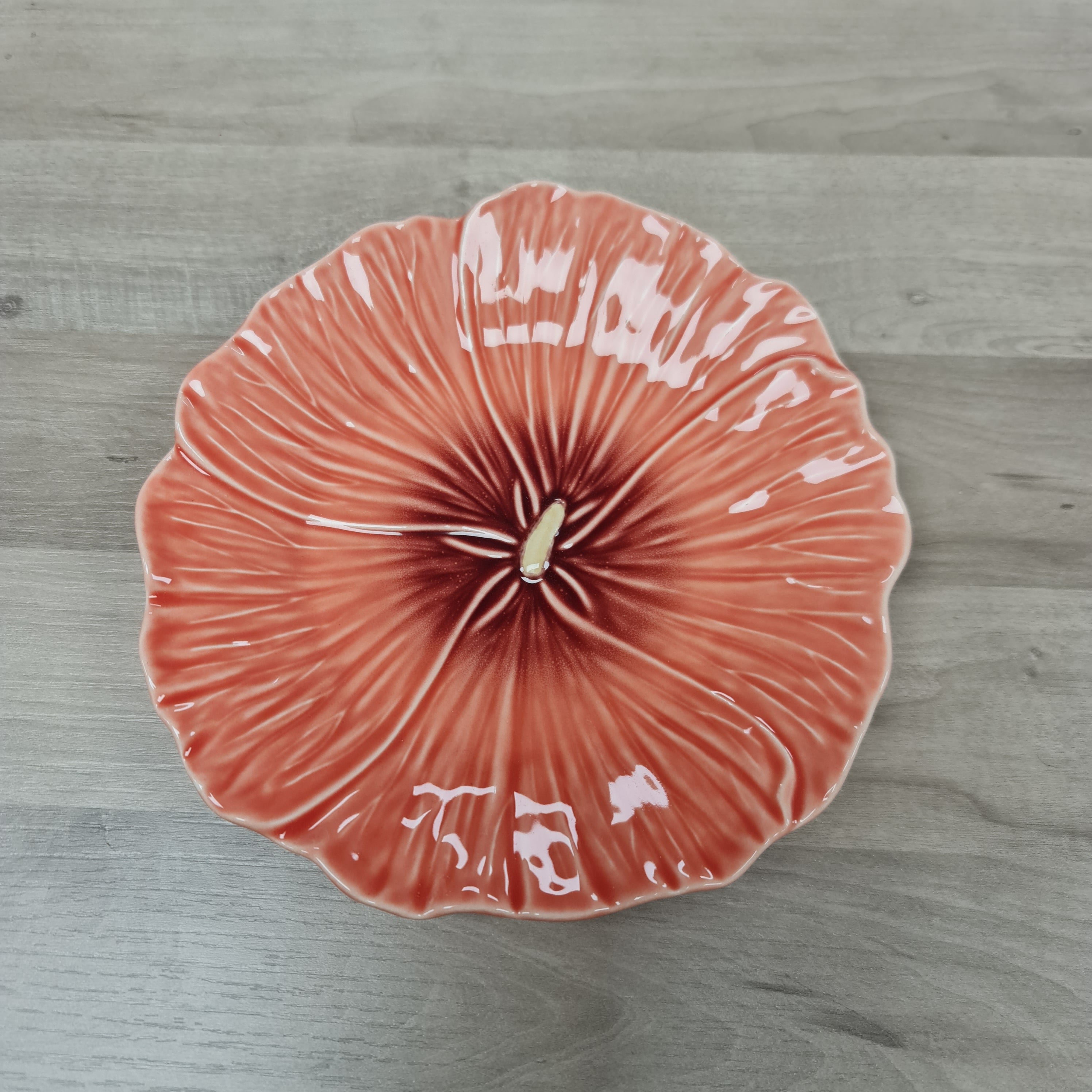 Maria Flor Hollyhock Plate by bordallo Pinheiro, made in portugal.