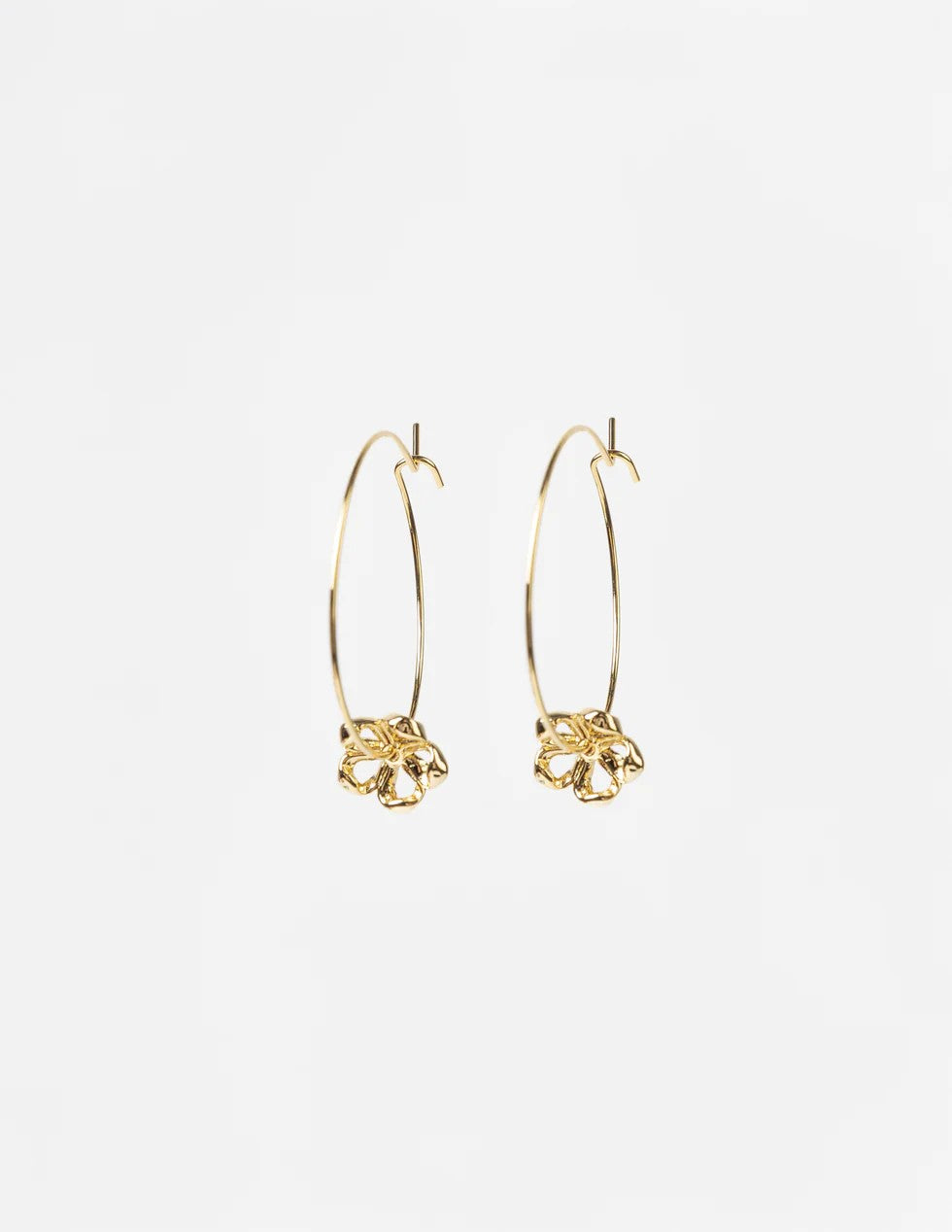 Stella & Gemma Earrings - Gold Hoop with Fold Mini Flower Pendant