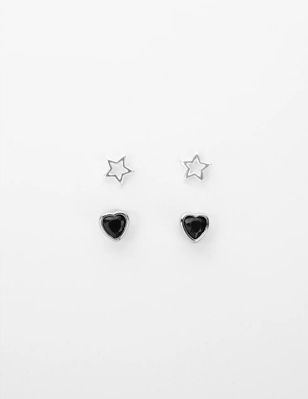 Stella & Gemma Earrings - Silver Set of 2 Stars & Hearts
