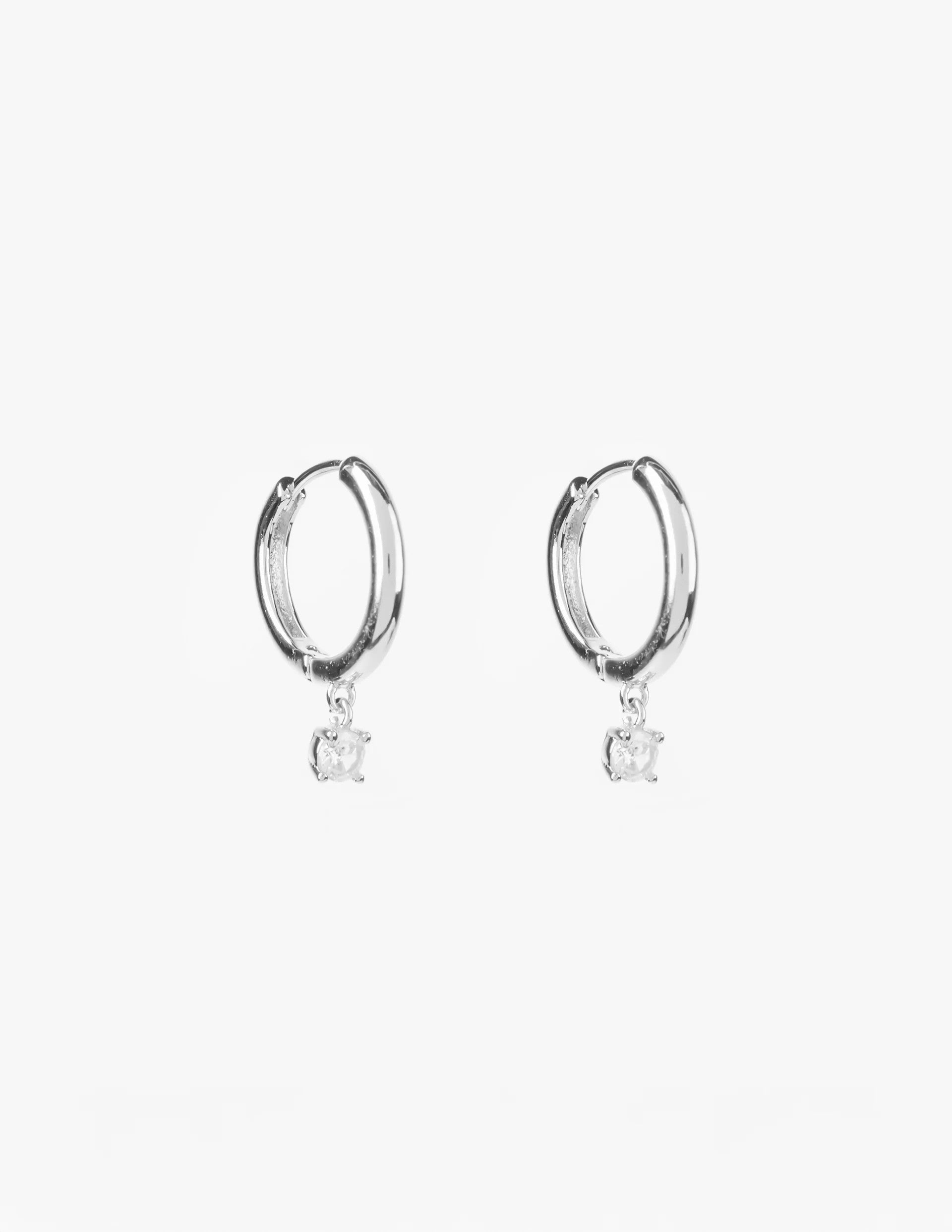 Stella & Gemma Earrings - Silver Hoop with Hanging Crystal