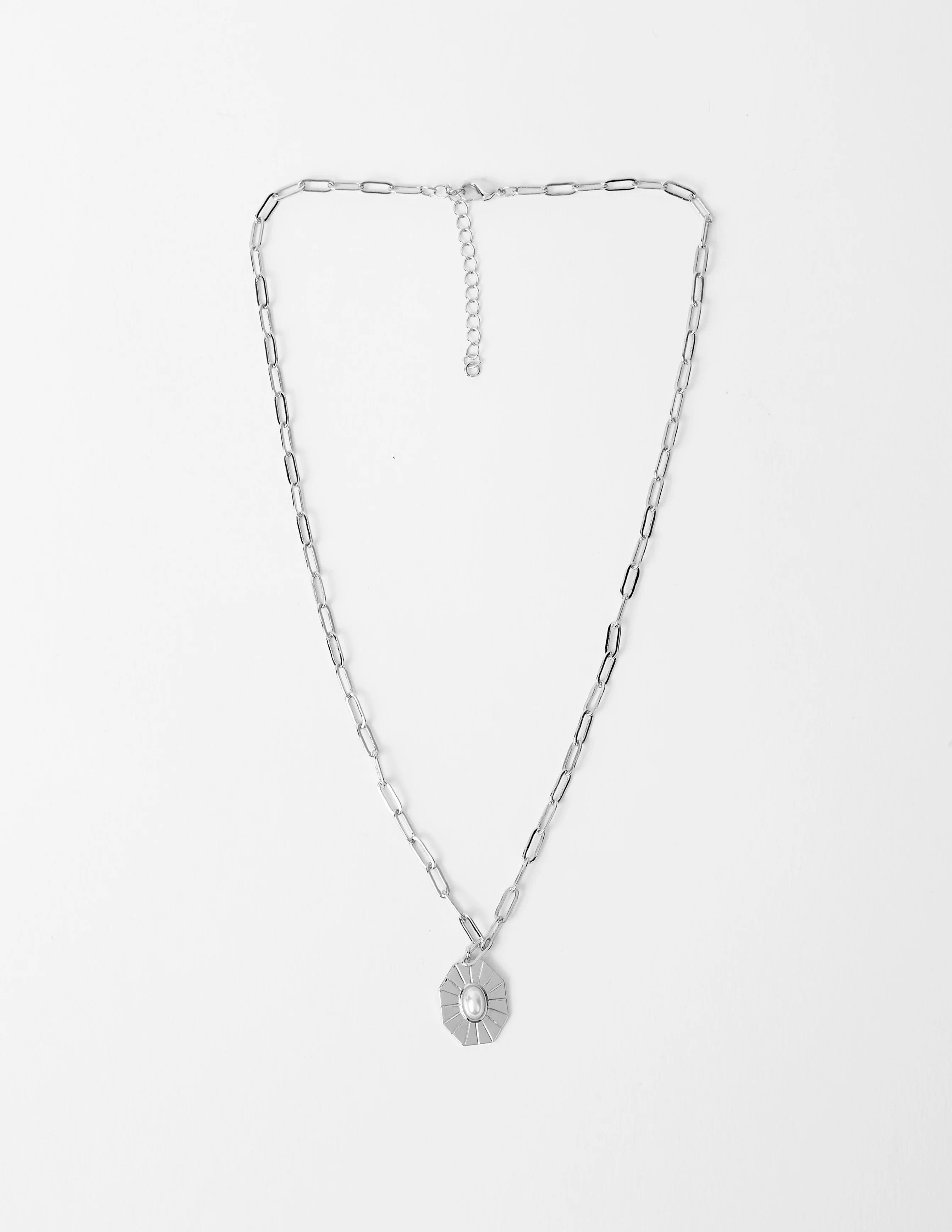 Stella & Gemma Necklace - Silver Medallion Pearl Centre