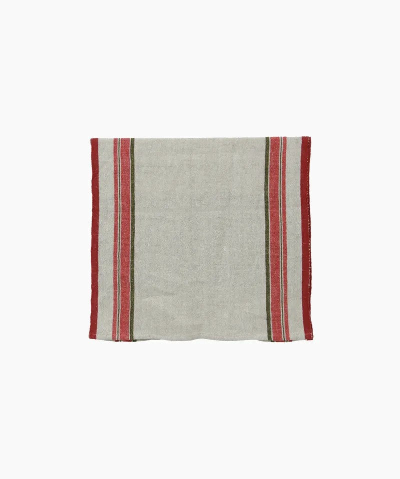 Add festive flair to your table with this lovely linen runner featuring bold red and green stripes. Perfect for holiday gatherings or everyday dining, it brings a modern farmhouse vibe to any setting.